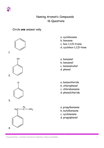 Naming Aromatic Compounds 16 Mcq Teaching Resources