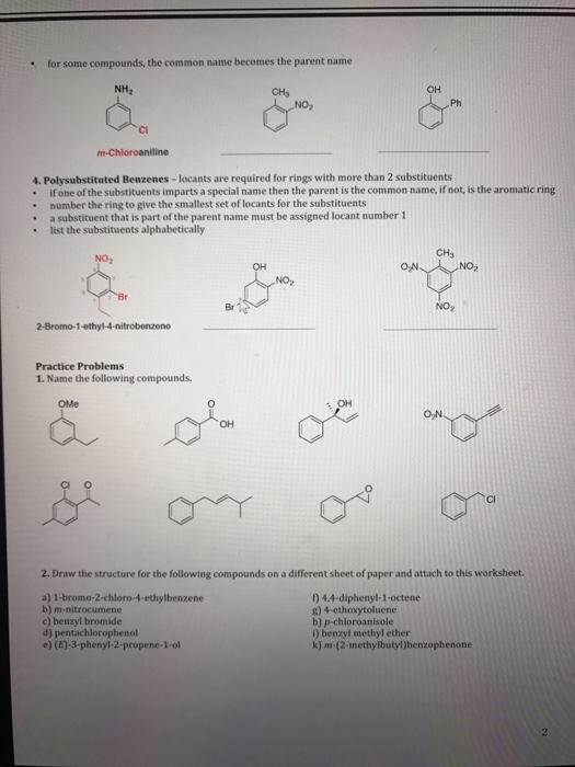 Aromatics Worksheet Aromatic Hydrocarbons U2013 Practice Sheet For Naming And Drawing Rules 1 Name The Following Aromatic Compounds 2 Name The Course Hero
