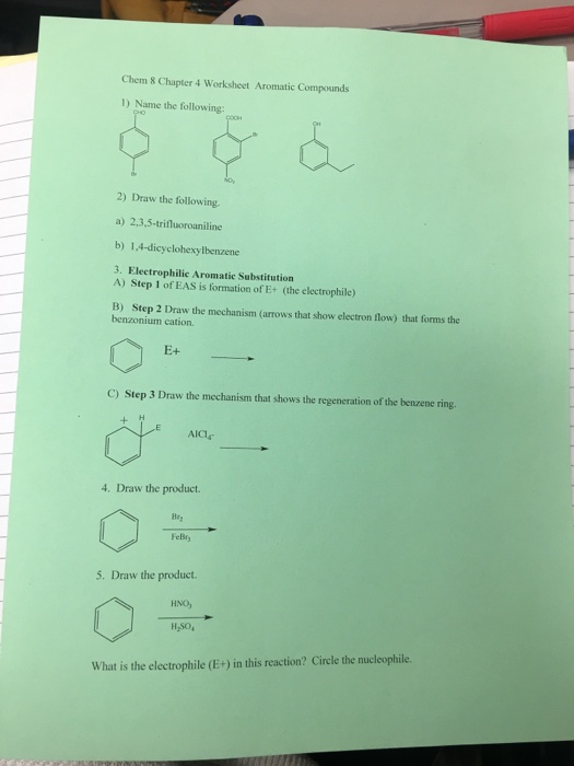 Aromatic compounds worksheet with answers. Your answer should include. These compounds comprise a distinct class called aromatic hydrocarbons. Electrophilic Aromatic Substitution Exercises Donate.